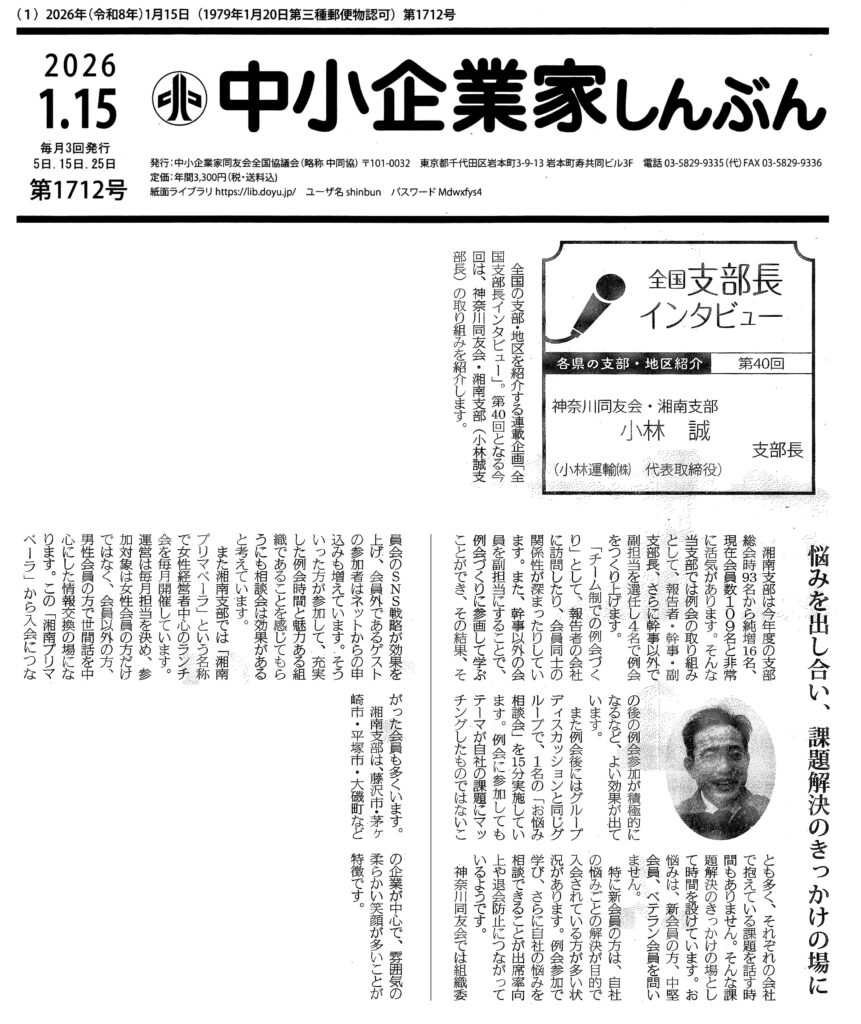 第40回となる今回は、神奈川同友会・湘南支部(小林誠支部長)の取り組みを紹介します。